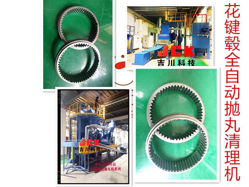 齿毂、花键毂全自动抛丸清理机设备介绍 1、设备自动化程度高、无需人工操作,配生产流水线作业 2、安全防护好:设备密封好,无粉尘外溢,设备抛丸舱内直接喷射或反弹击打部位均采用高耐磨锰钢板防护,维护方便,设备注重安全防护,检修方便; 3、环保:除尘器采用高精度滤袋除尘,过滤精度高,除尘效果好,粉尘排放达国标; 4、人性化:设备在设计过程中,充分考虑操作人员的安全性、作业便利性,维护保养 得方便性; 5、设备设计采用国外先进技术, 使用案例:碧梦技 吉川机械售后服务承诺 感谢您选购吉川机械喷砂机产品,吉川机械公司严格按照ISO9001国家质量体系标准进行质量控制。设备除易损件质保一年、电器质保二年,吉川机械在国内各省都有售后服务点,其他发达国家也有我们的售后服务点,我们已经做到国内售后服务24小时响应,国外48小时响应,争取在最短的时间内为客户解决喷砂所产生的问题 生产厂家:东莞吉川机械科技股份有限公司 项目负责人:周泽明 联系方式:13816599422 邮箱地址:jck0794@163.com 网站: